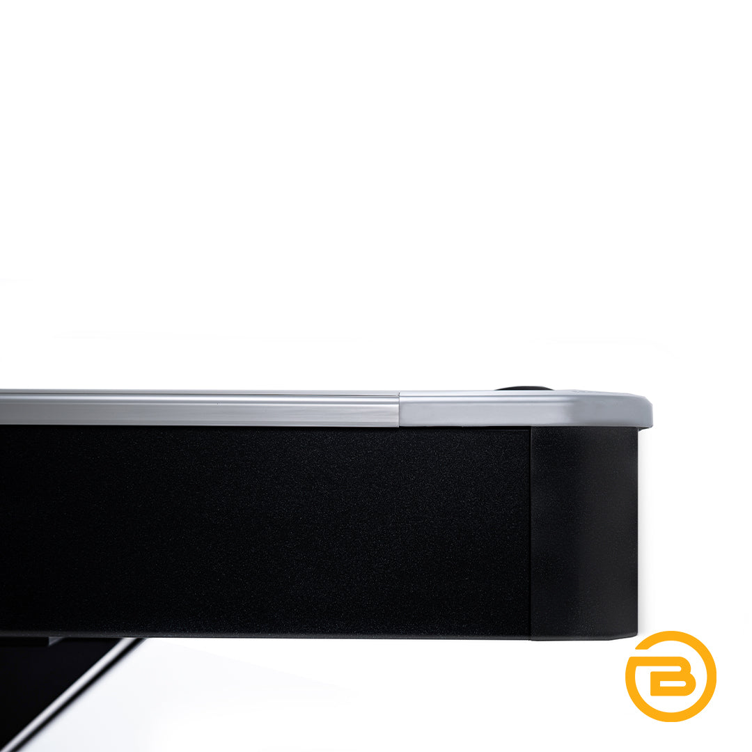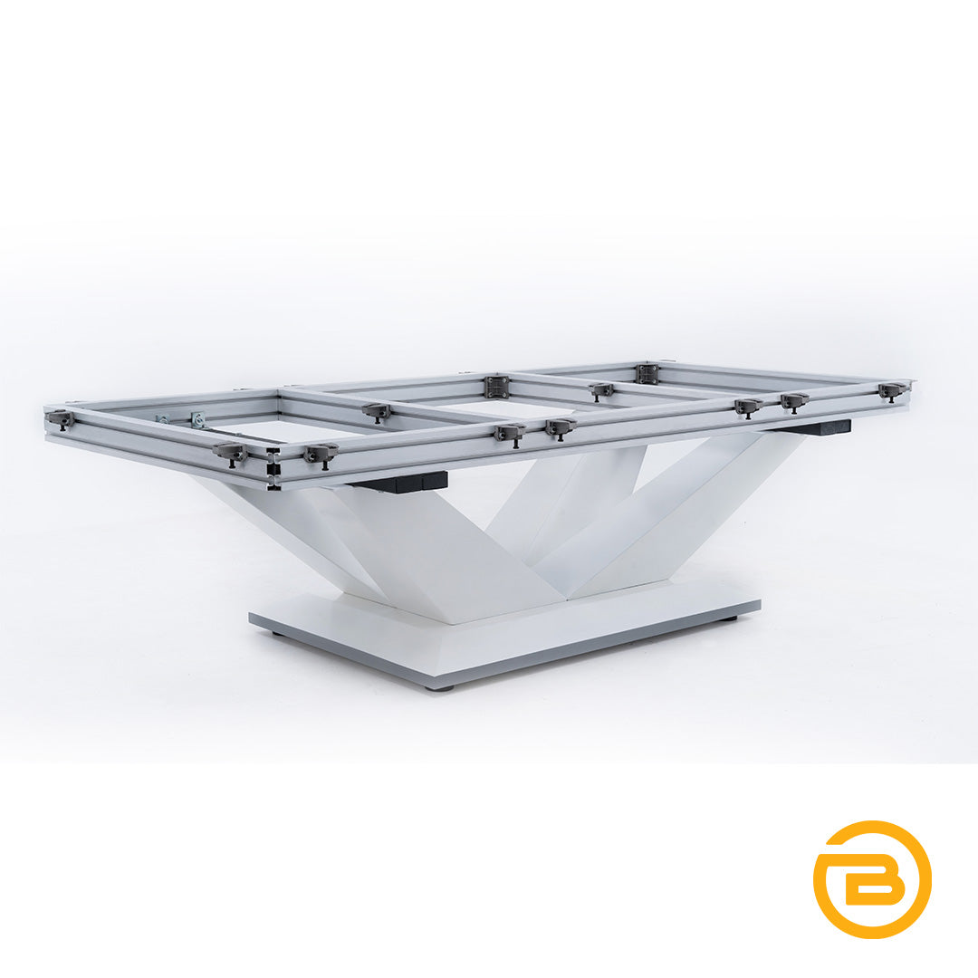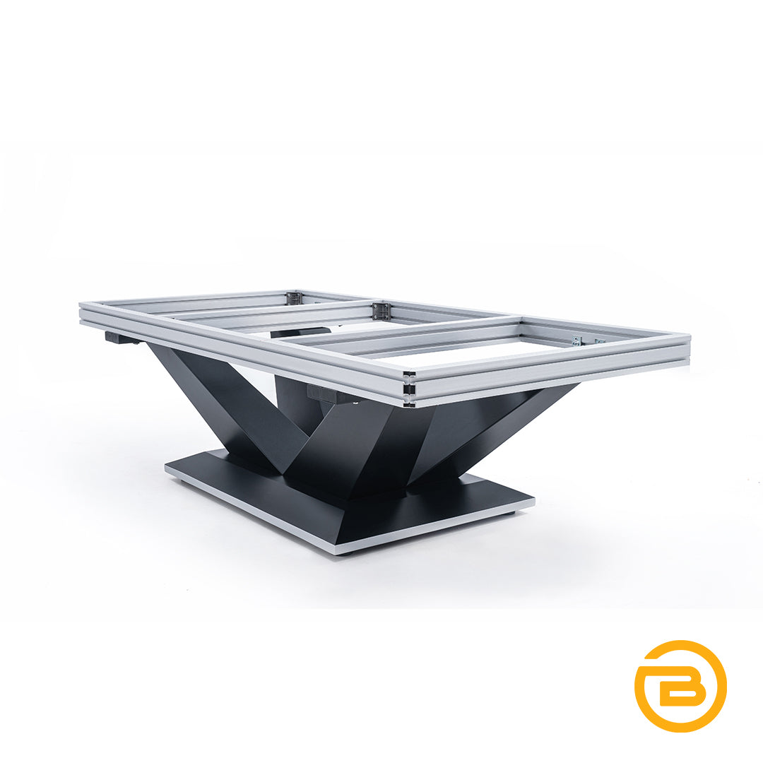 A tournament-grade powerhouse, the Victory II Plus boasts a signature “V”-style pedestal and legs, a patented Slate Leveling System (SLS) and Leg Leveling System (LLS), and TPR pockets for consistent performance. With precision‑cut 30 mm Rasson slate, aluminum support beams, Klematch P59 cushions, and luxury Adamath‑Wood rails resistant to warping, scratches, heat, and moisture, this table guarantees professional-level play and exceptional longevity.